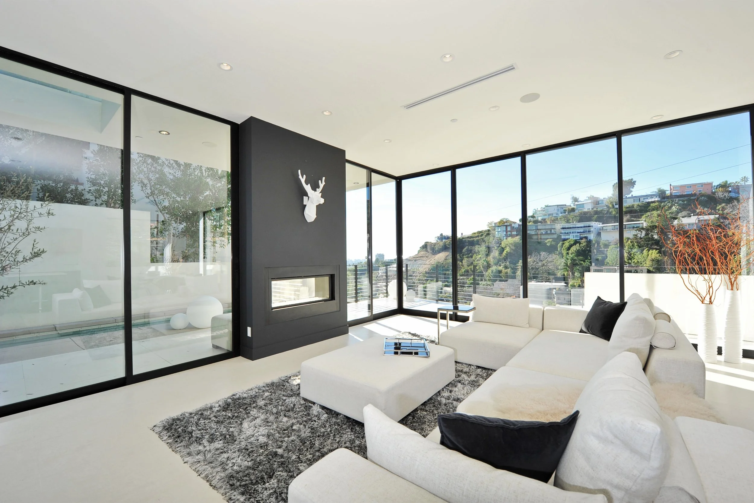 The connection between the outside of the house and the inside of the house gets accentuated by the transparency of the glass. White walls are an open canvas in which the interior designated elements found a place.